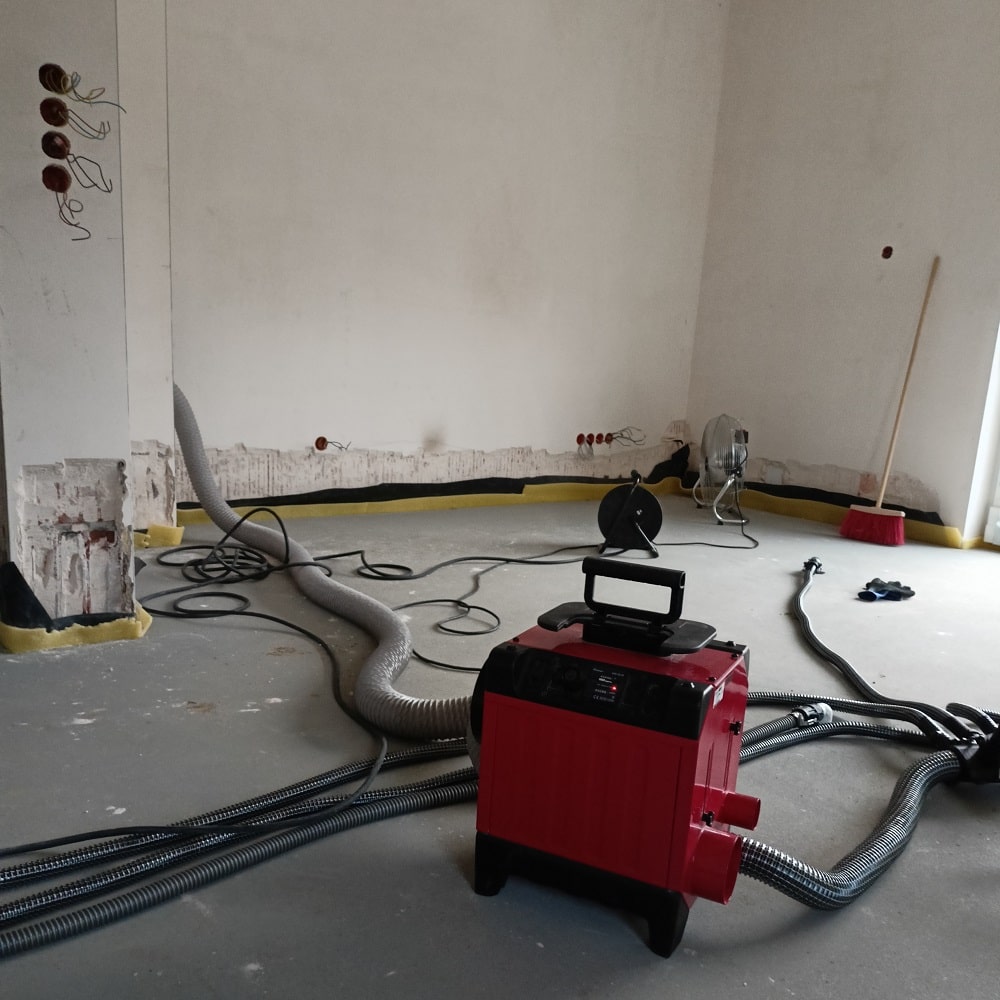 - Rozwiązanie: wynajem osuszaczy powietrza, nagrzewnic, wentylatorów, pochłaniacz wilgotności